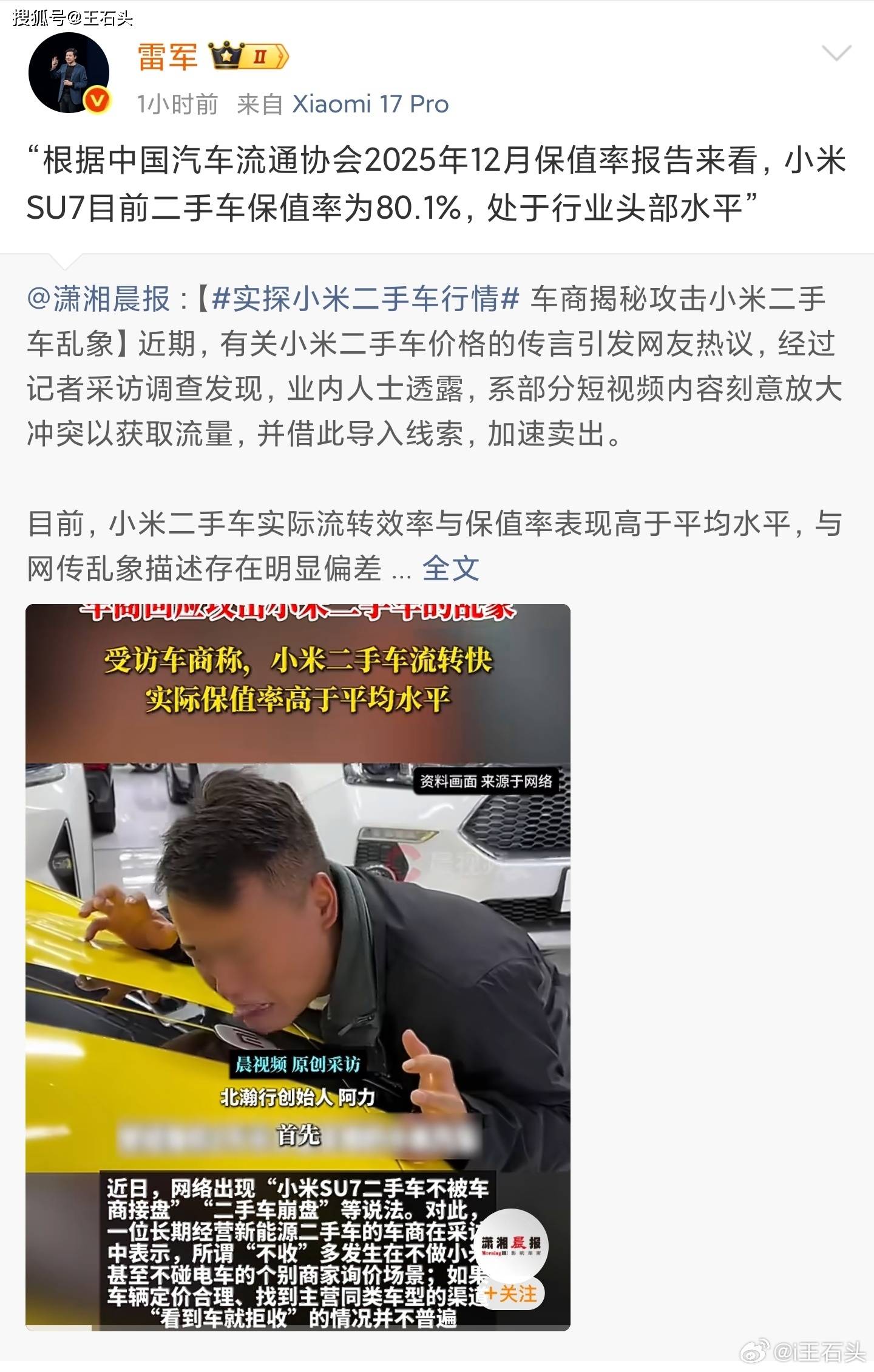 而关于职业来说,小米SU7所带来的二手车价值评论,也反映出智能电动车年代评价体系正在产生的深入改变。